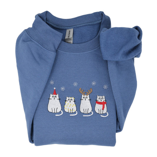 Christmas Cat Embroidered Crewneck Sweatshirt