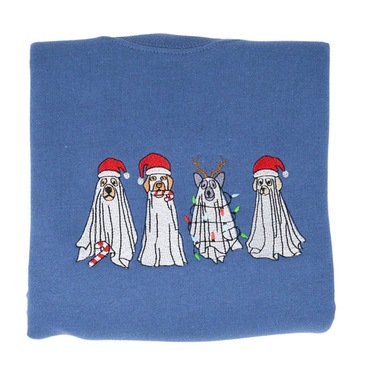 Christmas Ghost Dogs Embroidered Sweatshirt