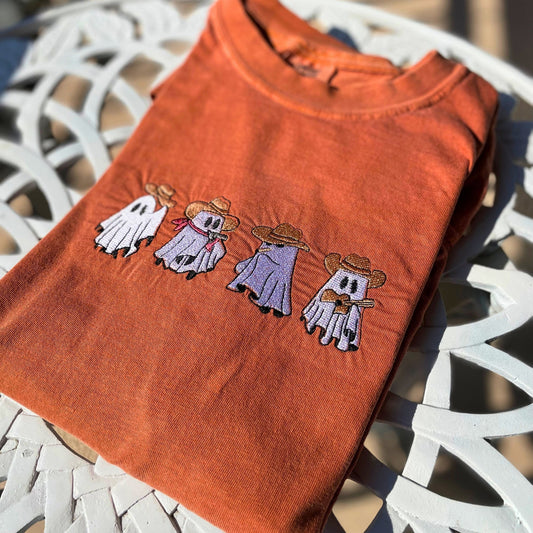 Ghost Cowboy Embroidered Long Sleeve Shirt, Cowboy Ghost Shirt