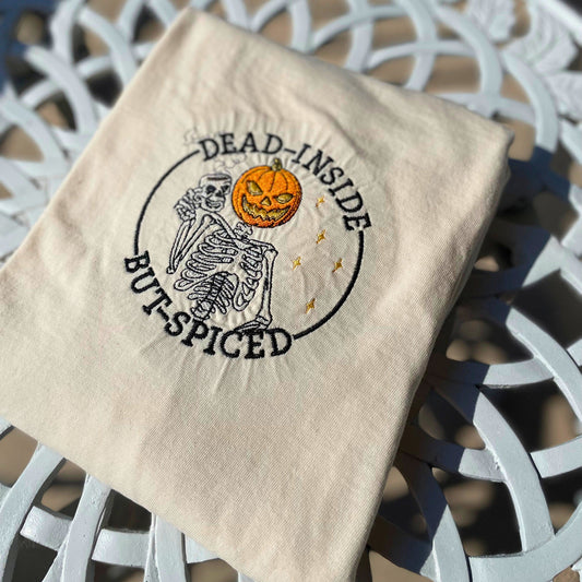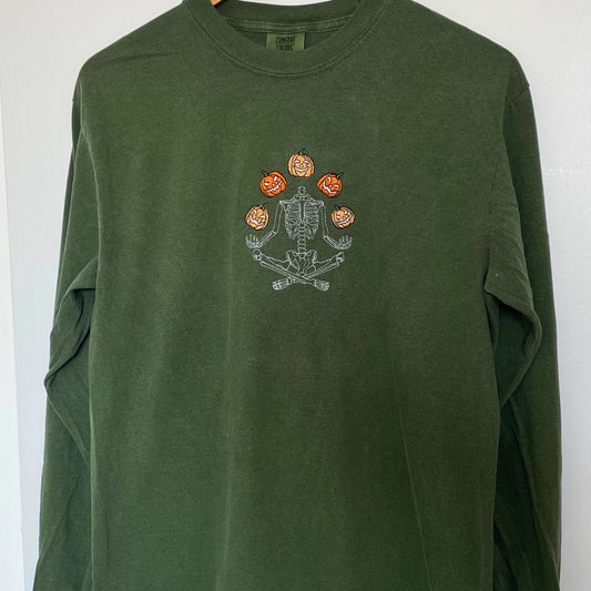 Skeleton Throwing Pumpkin Embroidered Long Sleeve T-Shirt