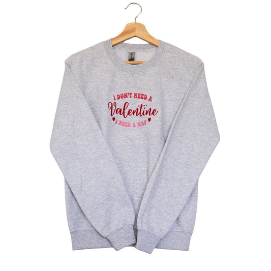 I Don't Need a Valentine I Need a Nap Embroidered Valentines Day Sweatshirt