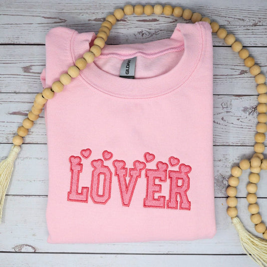 Valentines Day "Lover" Hearts Embroidered Sweatshirt